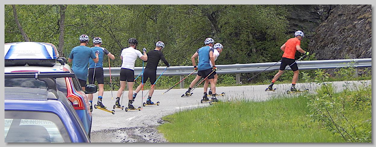 Moet een zware traning van gekwalificeerde langlaufers zijn. Ze gaan de berg op naar 1200 meter hoogte met 8% helling
