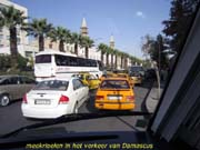 ![]() | Het is nog vroeg (7 uur) als we vertrekken naar de grens met Syrië. Dan volgt weer het lange wachten in de zon om zo'n 6 uur later met de verlangde papieren de grens te kunnen passeren. Deels in colonne deels individueel vertrekken we naar Damascus. Het centrum is chaotisch en het verschuiven van rijbaan veelvuldig. Toch bereiken we zonder al te veel problemen de camping in Damascus. |