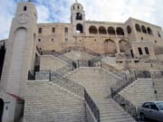 ![]() | Het vrije bezoek aan Damascus is omgezet naar zaterdag, omdat vandaag (vrijdag) de meeste winkels dicht zijn. Prima. Vandaar dat we per bus een paar bezoekjes afleggen. We gaan naar het noorden en bezoeken het klooster in Seydnaya; een christelijke enclave, waar Aramees wordt gesproken. We waren getuige van de doop van 2 kindjes. We lunchen en bezoeken daarna Maalula, waar elk verkeer wordt verwijderd ivm een gepland bezoek van de president. De hele route wordt gewapend bewaakt en we zijn hierdoor bijna 3 deelnemers kwijt. |